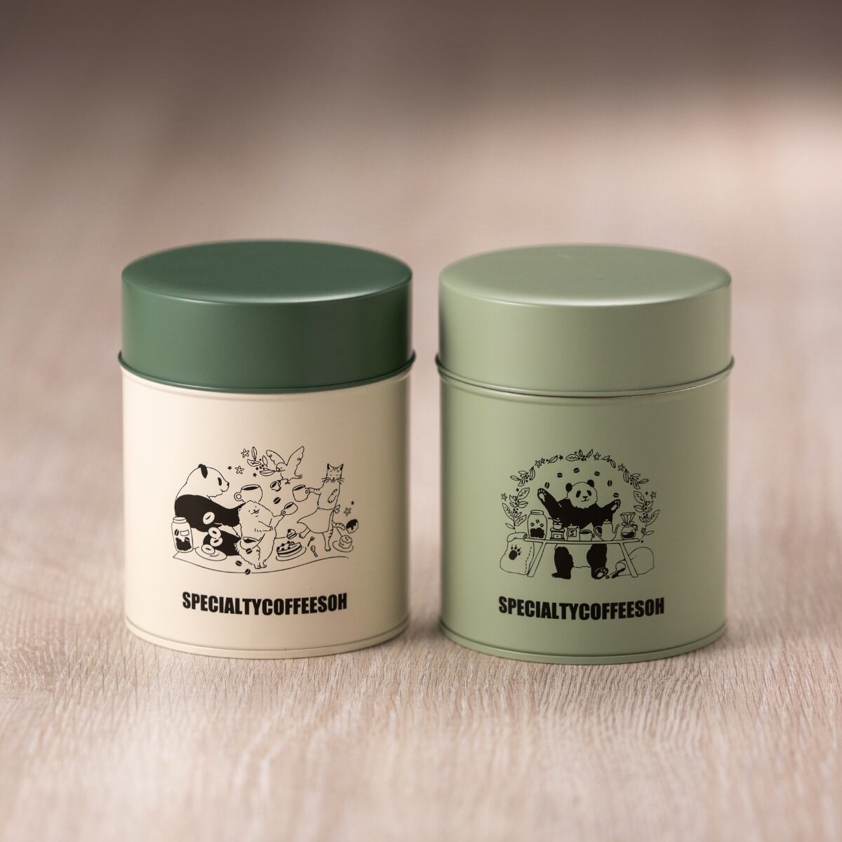 Abyss:ワントーンのライトミリタリーカラー。一人パンダがコーヒー道具に囲まれる。
