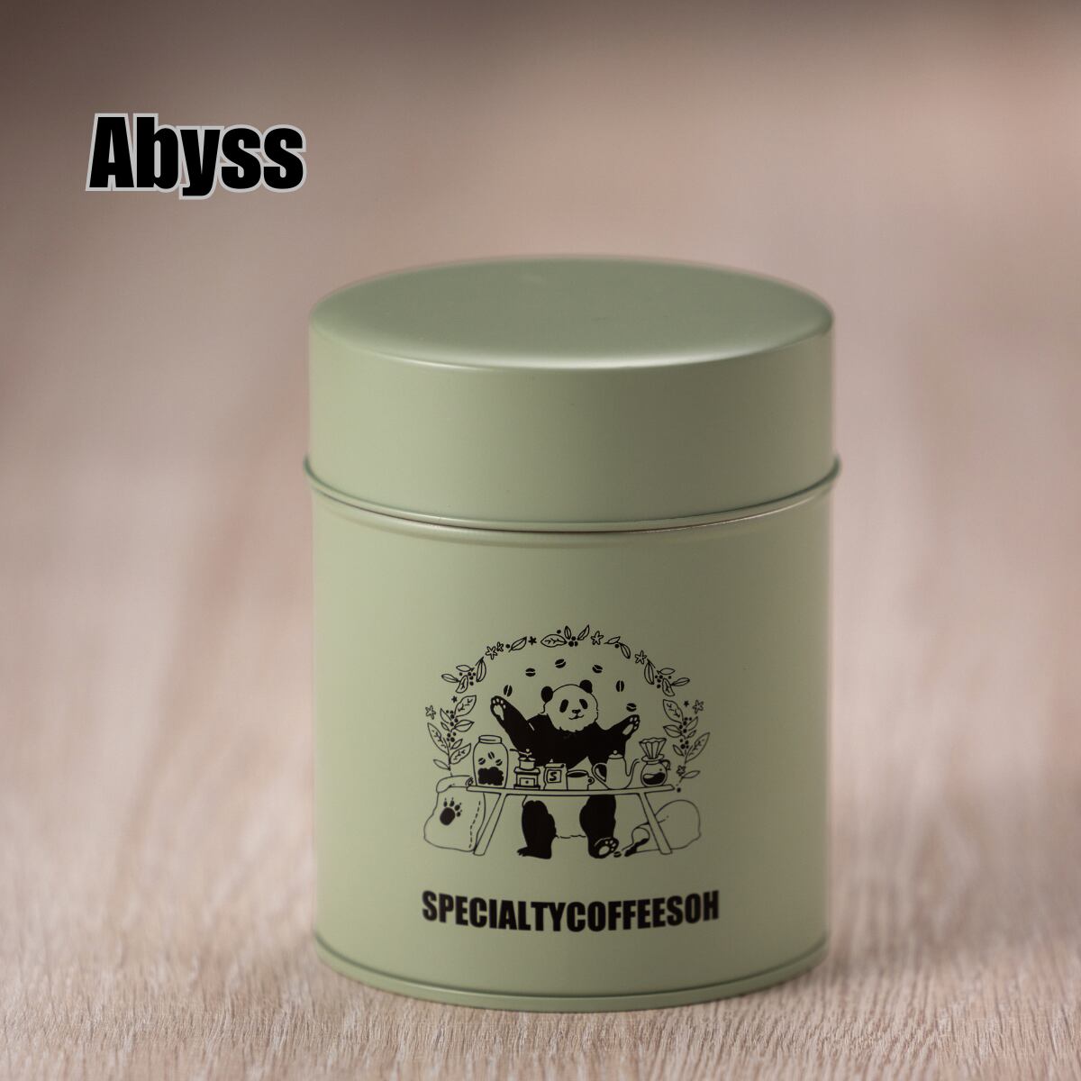 Abyss:ワントーンのライトミリタリーカラー。一人パンダがコーヒー道具に囲まれる。
