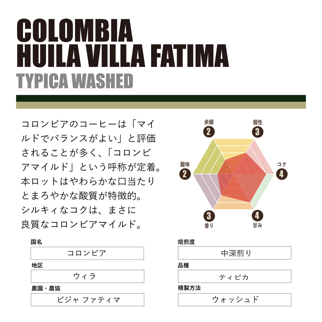 コロンビア ウイラ ビジャファティマ ティピカ ウォッシュド 中深煎り